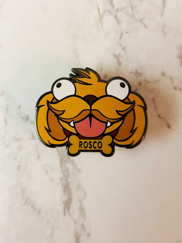 This is a pre-order for a Rosco Enamel pin! At 1.5" this hard enamel pin is the perfect size for this goodest boi to accompany you on all your travels (or just hang out with all your other pins).