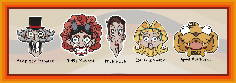 Set includes Mortimer Handee, Riley Ruckus, Nick Nack, Daisy Danger, and Rosco. Buying them in the set saves $1/pin!